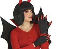 RĘKAWICZKI DO STROJU DIABLICY CZARNE Z CZERWONYMI PAZURAMI