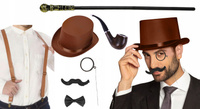 ( ilość produktów: 1009 )ZESTAW STRÓJ DŻENTELMENA CYLINDER + LASKA + SZELKI + WĄS + FAJKA VINTAGE