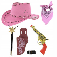 ( ilość produktów: 1009 )KAPELUSZ KOWBOJ RÓŻOWY DZIECIĘCY BANDAMA REWOLWER KABURA + NASZYJNIK SZERYF