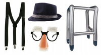 STRÓJ DZIADEK KAPELUSZ DMUCHANY BALKONIK OKULARY SIWE WĄSY BRWI SZELKI