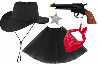 STRÓJ KOWBOJKA SZERYF KAPELUSZ KOWBOJSKI CZARNY REWOLWER ODZNAKA