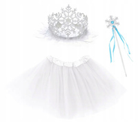 STRÓJ KOSTIUM ŚNIEŻYNKA TIARA BIAŁA SPÓDNICZKA TUTU + RÓŻDŻKA PŁATKI ŚNIEGU
