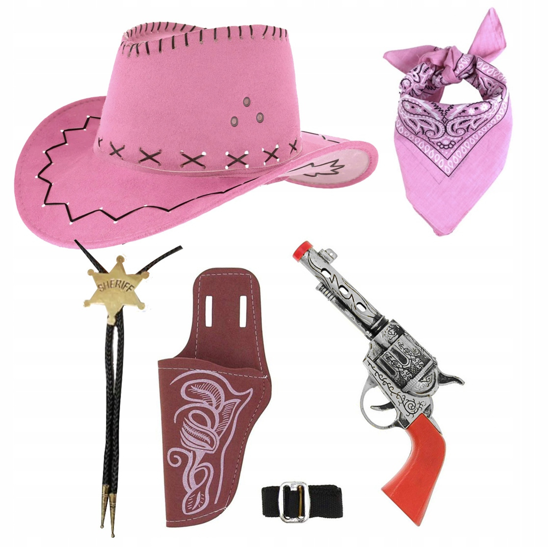 - 1 rewolwer zabawka (kolor srebrny lub złoty - wybieramy przypadkowo) wraz z kaburą i paskiem