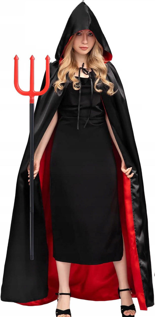 - Długa peleryna dwustronna (czarno - czerwona) wygodna i zwiewna 140cm
