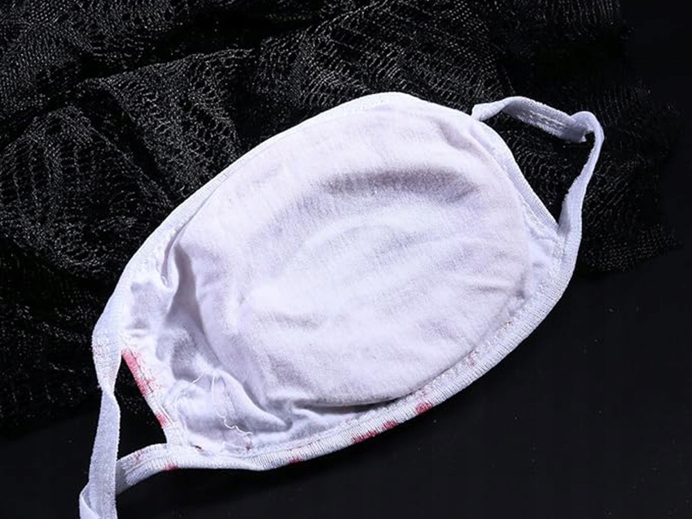 Maska idealnie nada się jako dodatek do stroju zombie - posiada zamocowanie zęby 3D i malowania przypominające ślady krwi