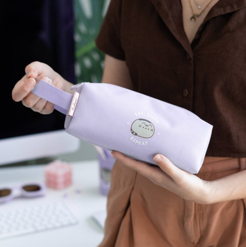 Prostokątny piórnik Pusheen "Eat, Sleep, Repeat" to idealny dodatek dla fanów uroczej kotki. Wykonany z trwałego poliestru, piórnik jest nie tylko stylowy, ale również bardzo praktyczny. Zamek błyskawiczny zapewnia bezpieczne zamknięcie, a uchwyt do przenoszenia dodaje wygody w użytkowaniu. Jego kompaktowe wymiary sprawiają, że zmieści się w plecaku, torbie lub torebce, oferując jednocześnie wystarczającą ilość miejsca na wszystkie potrzebne przybory. Idealny do szkoły, biura lub na co dzień, ten piórnik z motywem Pusheen podbije serca fanów kotki na całym świecie.