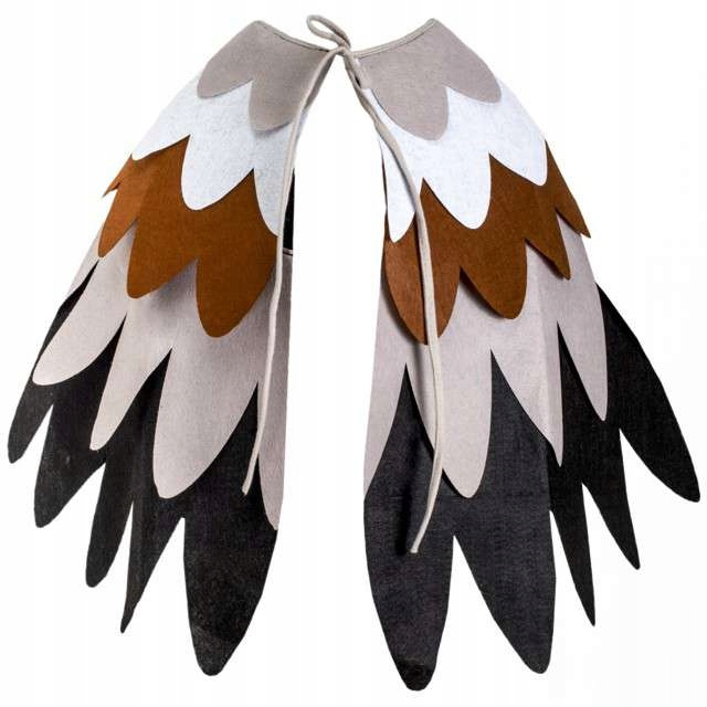 Peleryn wróbel, gołąb, orzeł, sowa itp, wiązana pod szyją. Pelerynka w formie dwóch skrzydeł, na każdym skrzydle po wewnętrznej stronie jest przyszyta gumeczka do założenia na ręce, dzięki czemu przy każdym ruchu ręki ruszają się skrzydła.