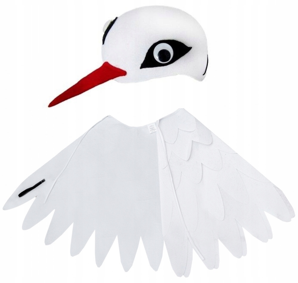 Niepowtarzalny zestaw bociana wspaniale sprawdzi się jako przebranie na szkolnych przedstawieniach bądź balach karnawałowych.