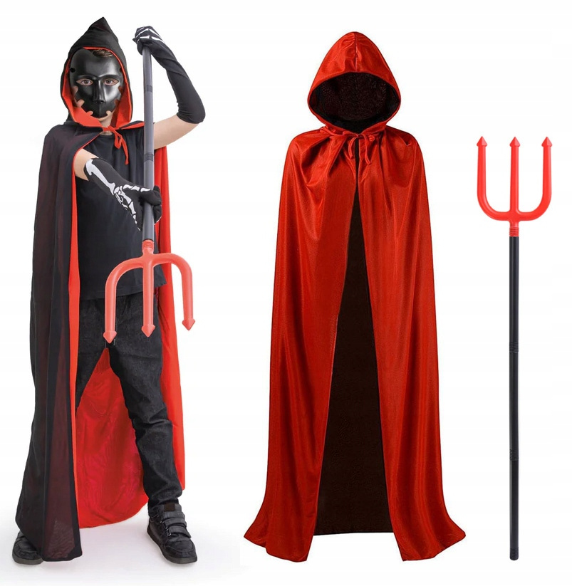STRÓJ DIABEŁ DIABLICA PELERYNA DWUSTRONNA 120 CZARNA CZERWONA + DUŻE WIDŁY