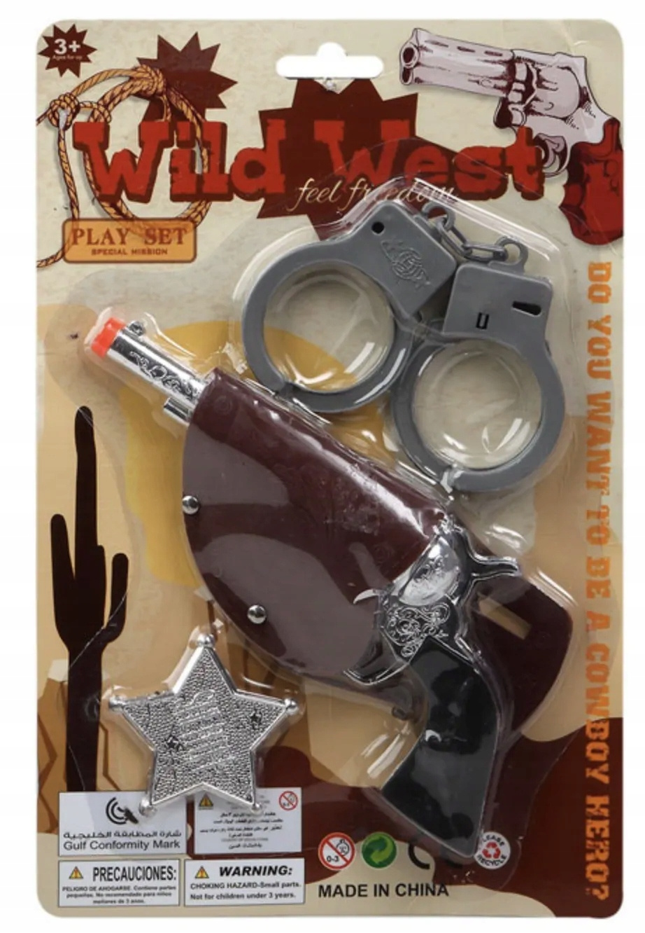 ZESTAW KOWBOJ PISTOLET KABURA ODZNAKA KAJDANKI