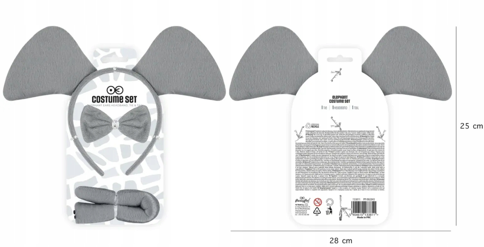 STRÓJ SŁONIK SŁOŃ PLUSZOWA OPASKA Z USZAMI OGON MUSZKA + SPÓDNICZKA TUTU