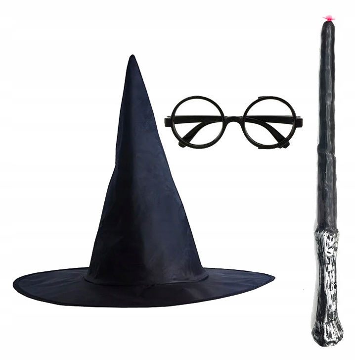 RÓŻDŻKA KRAWAT OKULARY KAPELUSZ STRÓJ CZARODZIEJ