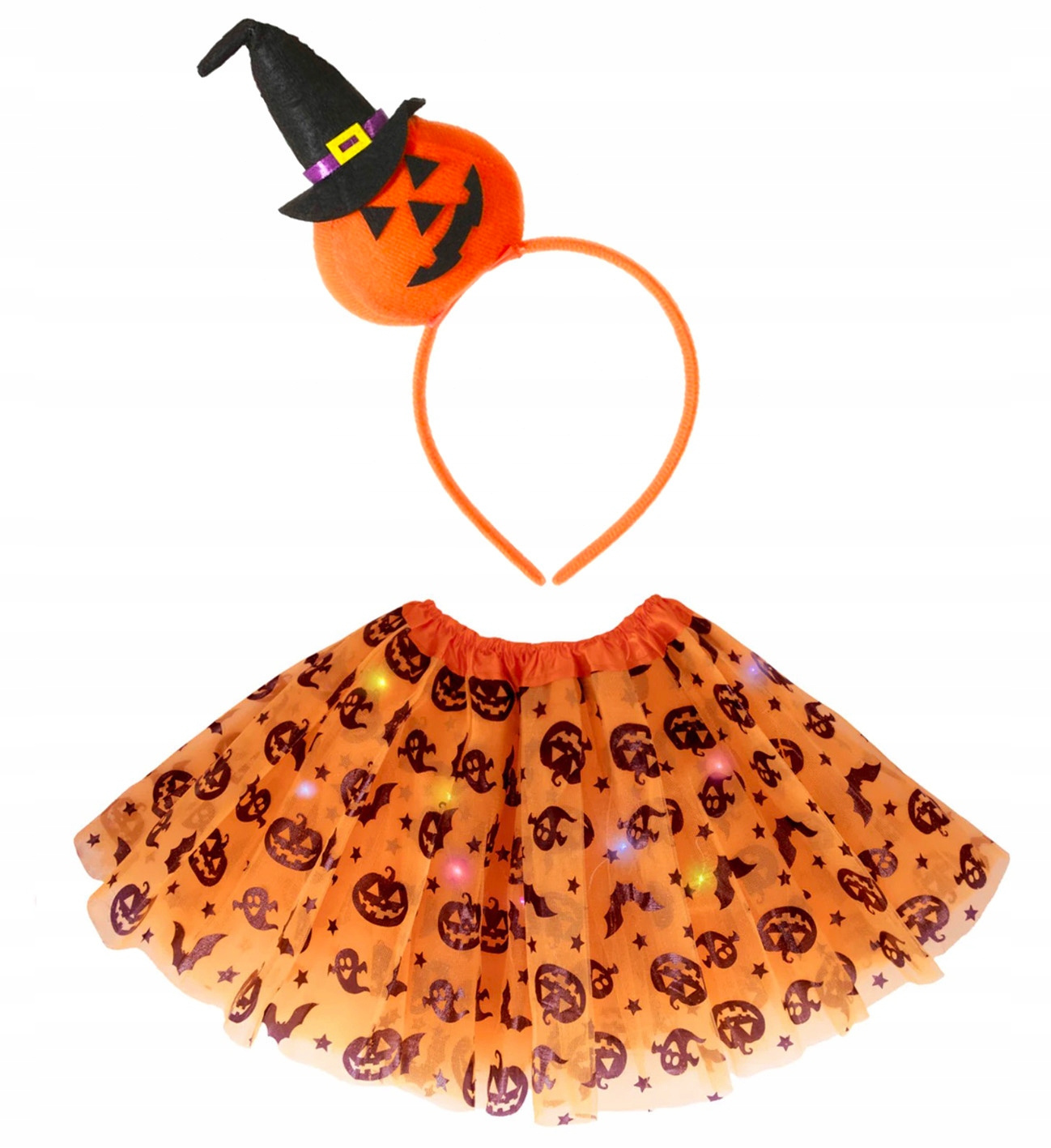 ZESTAW STRÓJ DYNIA OPASKA WIEDŹMA + SPÓDNICZKA TIULOWA Z WZORKAMI 30cm