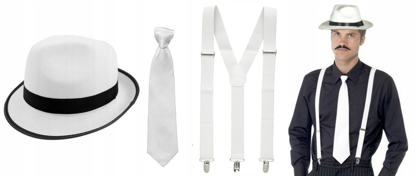 - krawat biały montowany na zamek lub gumkę - długość 47cm (100% poliester)